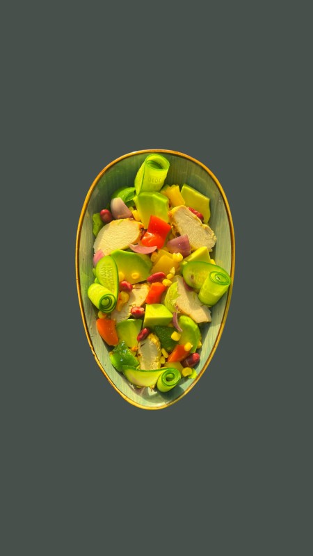 (410 Calories)Avocado, Grilled Chicken, Kidney Beans, Sweet Corn,Cheddar Cheese, Cherry Tomato, Grilled Capsicum and Grilled Onion