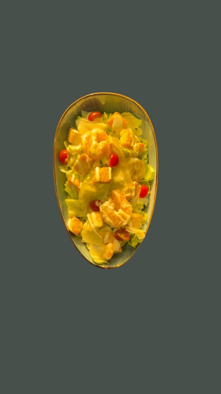 (617 Calories)Romaine Lettuce, Parmesan Cheese,Garlic Croutons and Caesar Dressing with Grilled Prawns