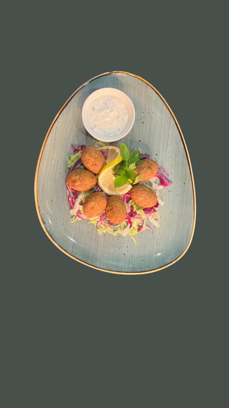 (390 Calories)Beef Kibbeh with Yogurt Sauce