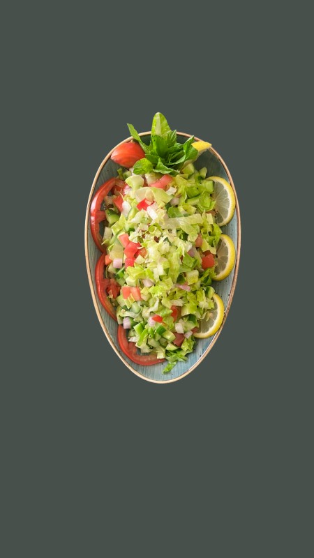 (280 Calories)Cucumber, Tomato, Lettuce, Radish, Zaatar Tossed with Pomegranate Syrup