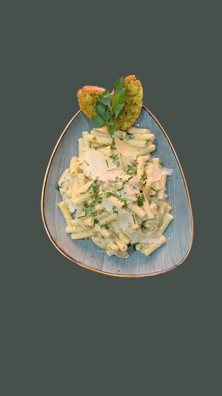 (358 Calories)Pasta, Creamy Pesto, Grilled Chicken, Fresh Basil,Parmesan Cheese